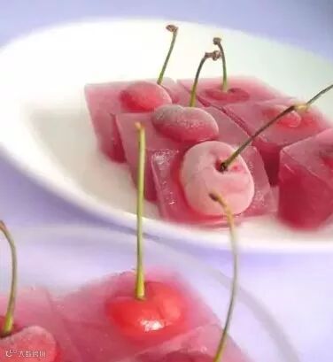 1.冰盒每个格子放一个樱桃。樱桃的蒂不要去掉,这样方便拿;