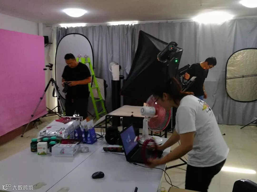 工作人员正在忙碌着为创业者拍摄产品图片