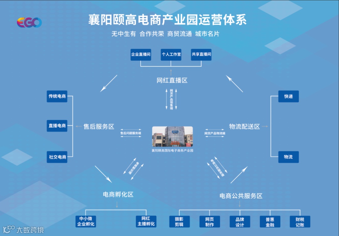 园区专注于电子商务的创新创业、人才培训及中小微企业的孵化等业务,目前已经形成了“两基地+两中心”的全产业链集群模式。成为广大有志于电商从业、创业、创新人才和企业的优质平台;同时为校企联合、产学研落地搭建桥梁;更成为了本地农特产品上行和传统商贸转型的推进器,致力于推进老河口电子商务的数字化进程,协助政府打造智慧城市。