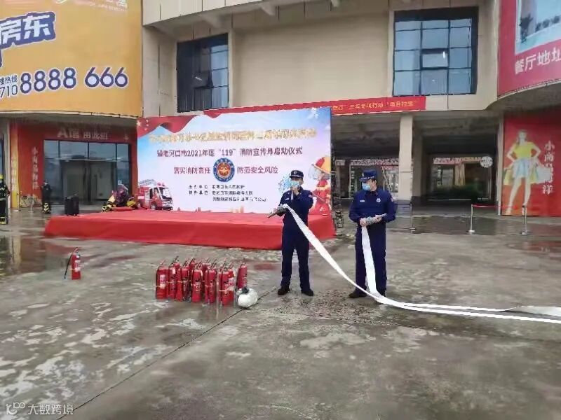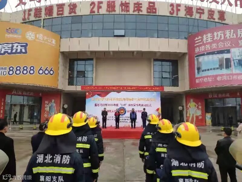 11月6日上午,老河口市2021年度“119”消防宣传月启动仪式暨“消防逃生基层行”三年专项行动“项目拉练”在我园颐高商贸城广场举行。老河口市政府工业科马涛科长、市应急管理局韩副局长、市消防应急救援大队杨昌副大队长出席活动致辞并指导消防演练。我园全员参与消防演练,全面加强了新季度的园区消防安保工作。