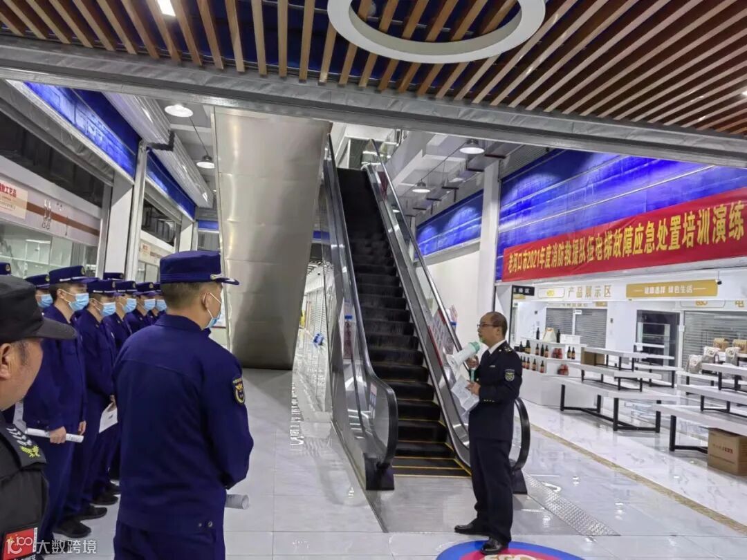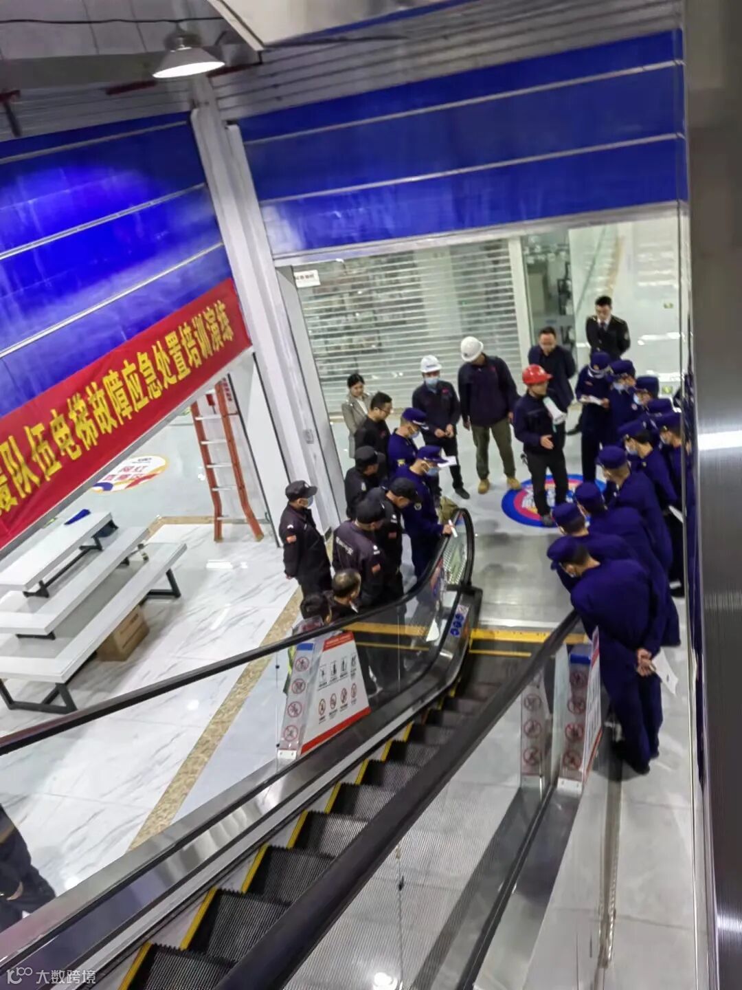 消防救援大队的培训导师和电梯维保单位技术人员针对颐高商贸城内的扶梯现场拆解、电梯结构讲解和常见故障及维修知识科普。
