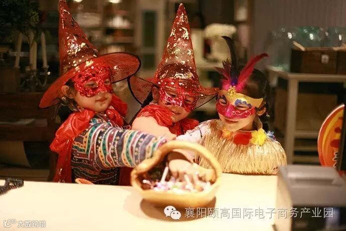 小朋友穿精灵服、讨万圣节糖果