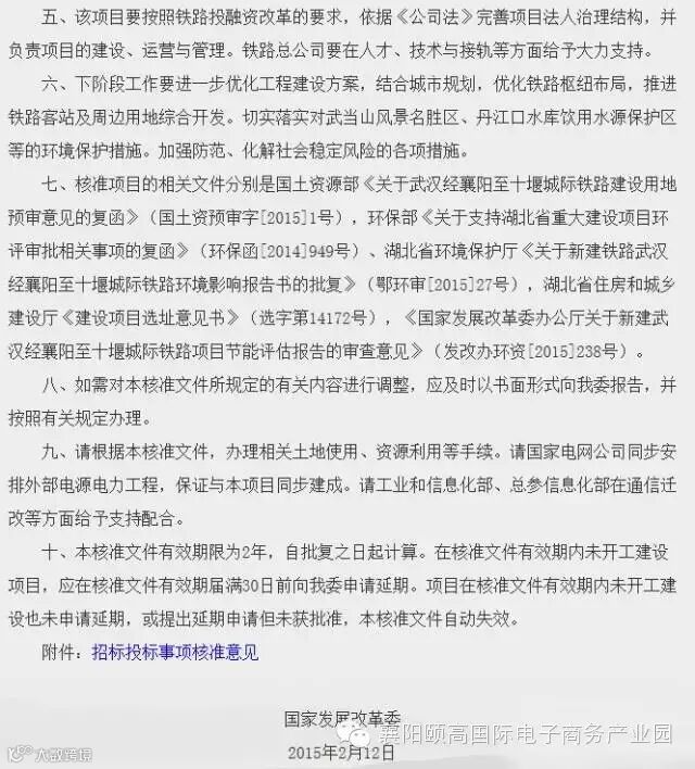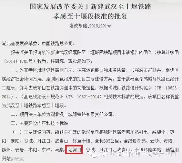 襄阳颐高国际商贸城所在区域,老河口南部酂阳新城迎来重大区域利好!中新网9月28日报,国家发改委公布《关于新建武汉至十堰铁路孝感至十堰段核准的批复》,原则同意项目主要建设方案,铁路途径老河口并将在老河口设站,老河口南站将成为武十铁路重要途经站点。