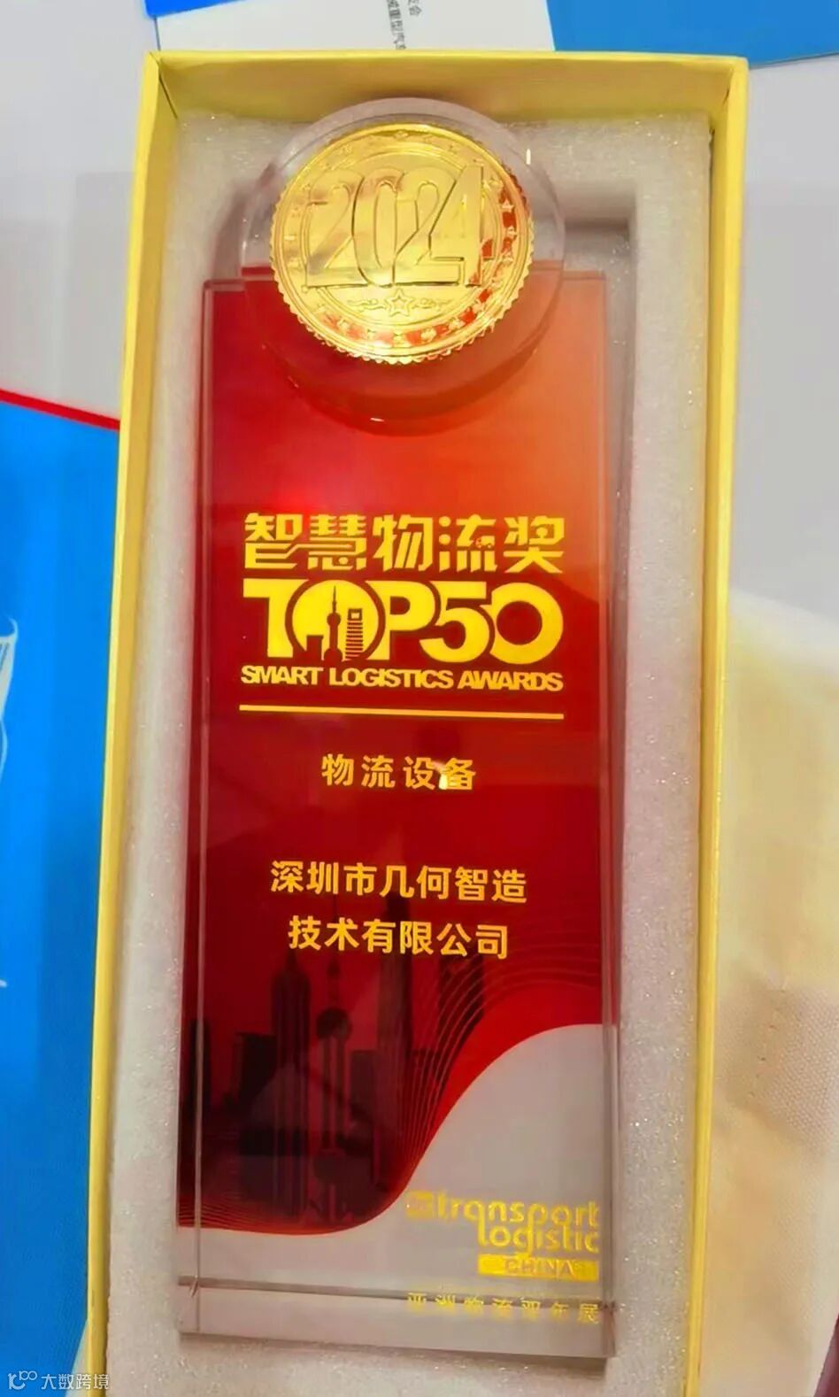 本次展会中,几何智造在智慧物流领域大放异彩,荣登TOP50企业榜,更在物流设备领域荣获第一名的殊荣。