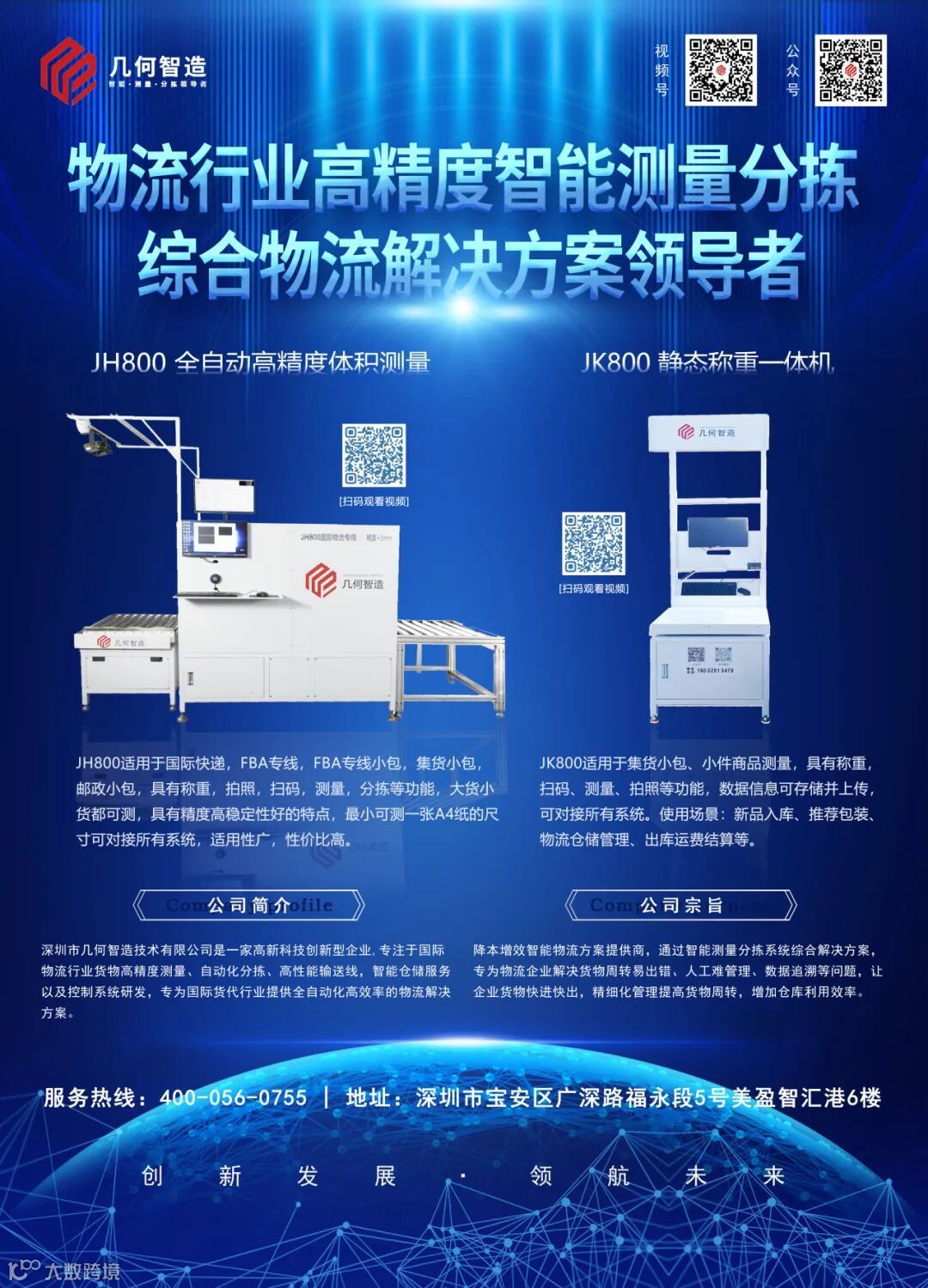 几何智造拥有36余项技术专利,并荣获ISO认证的“物流自动化设备(体积秤及配套设备)的研发和组装”证书。