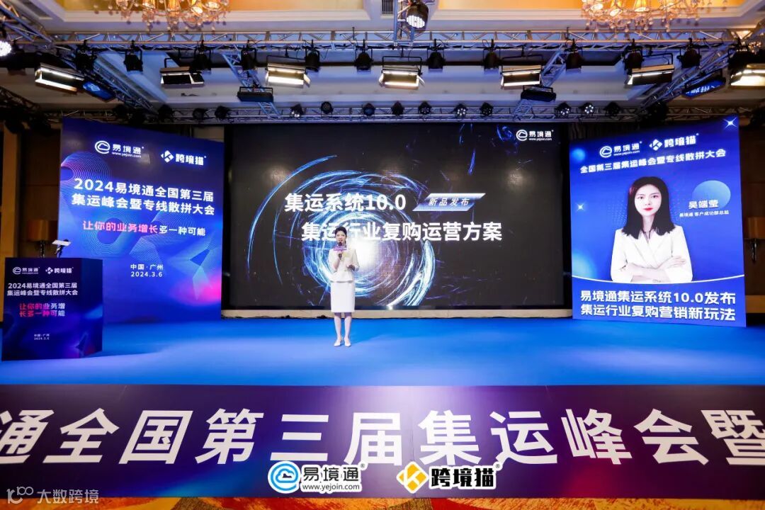 接着,由易境通客户成功部总监吴端莹女士详细展示了集运系统10.0的新功能与优势,并深入探讨了集运行业复购营销的新趋势。她围绕“高复购”主题,解析了如何通过产品策略、用户跟进、创新营销及工具使用,实现存量增长。吴总监强调,在集运2.0时代,维护存量客户与促进复购同样重要。她的独到见解为集运行业的未来发展提供了新思路。