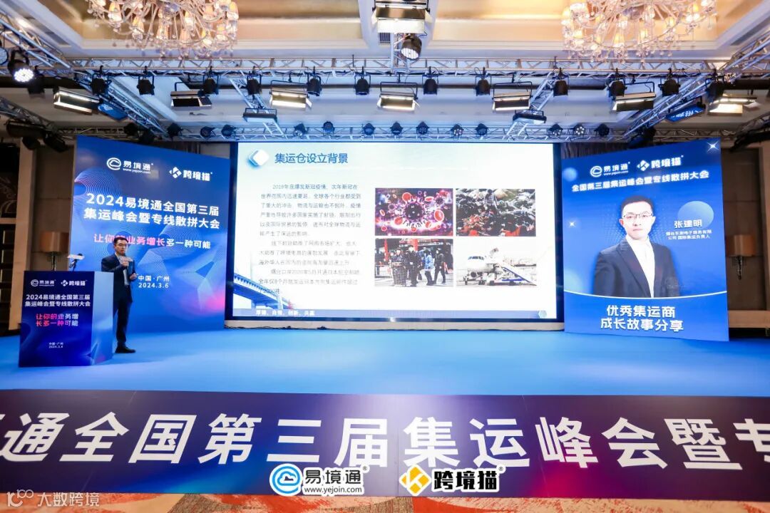 于3月6日,备受瞩目的全国第三届集运峰会暨专线散拼大会在广州白云颐和大酒店圆满举办。此次盛会由易境通携手跨境猫共同举办,集结了业界精英,共襄盛举,为推动集运与专线散拼业务的发展注入了新的活力。