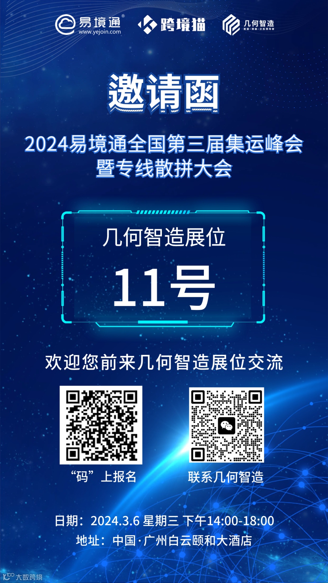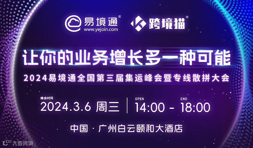 预祝“2024易境通全国第三届集运峰会暨专线散拼大会”圆满举办,期待在盛会上与各位业界精英携手同行,共同书写集运行业的新篇章!