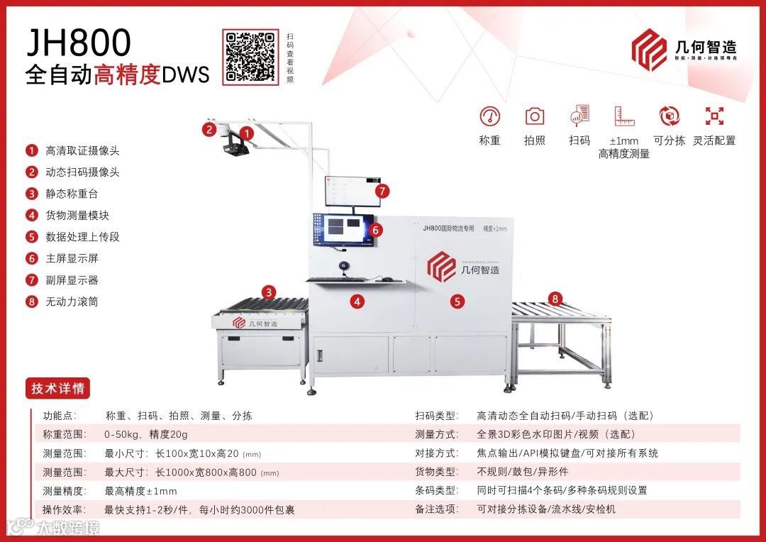 JH800这款高性能的DWS设备,适用于多种国际物流场景,包括国际快递、FBA专线、FBA专线小包、集货小包以及邮政小包等。
