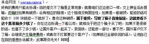 如果箱子坏了就进不了港,上船更是困难了嘛,责任不在车队这 呀