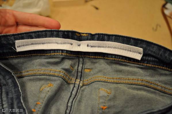 找一截松紧带,沿着边沿缝上,然后就能轻轻松松穿上了。