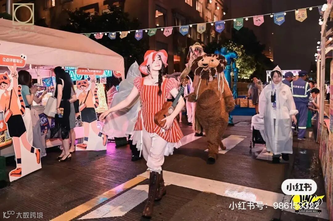 步行街市集长度约230米汇集网红美食、品牌特展和文创零售人头攒动,热闹非凡 。