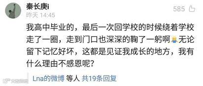 这一鞠躬,胜过千言万语。每名毕业生离校前,都该向母校鞠一躬。鞠躬,是告别,告别美好的校园时光;是感谢,感谢老师们的悉心栽培;也是自我期许,期许母校日后以己为荣。有母校“加持”的毕业生会更有力量,懂得感恩的学子一定走得更远。