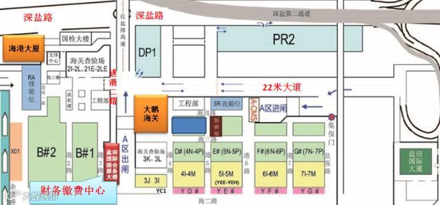 深盐路进港二路南盐田国际综合服务大楼一楼(A出闸旁)