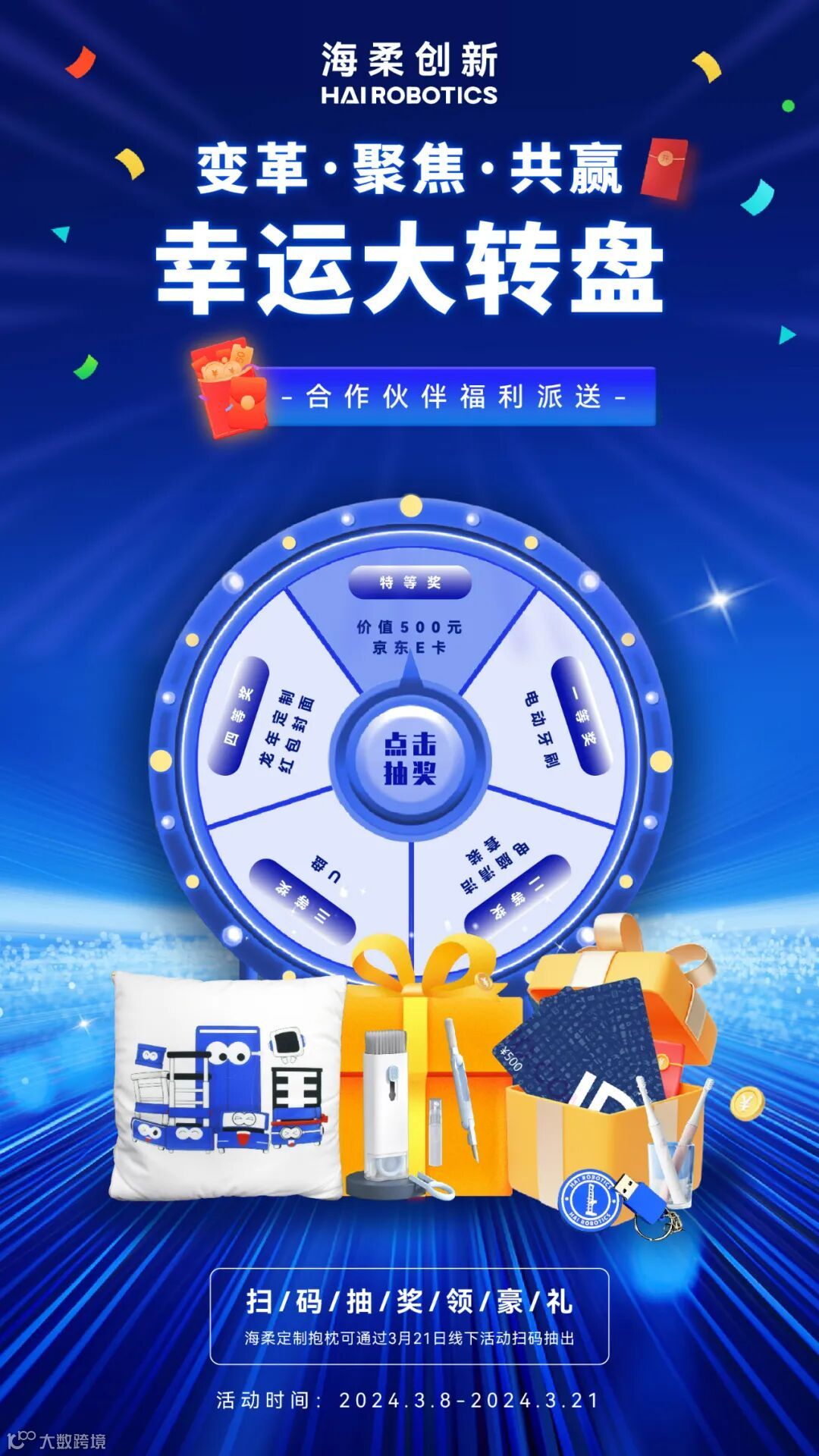 关注【海柔创新】服务号,即可无门槛参与2次抽奖。转发大转盘邀请1位好友完成抽奖,即可再获得1次抽奖机会,每人最多可抽10次,快扫描下方二维码参加吧!