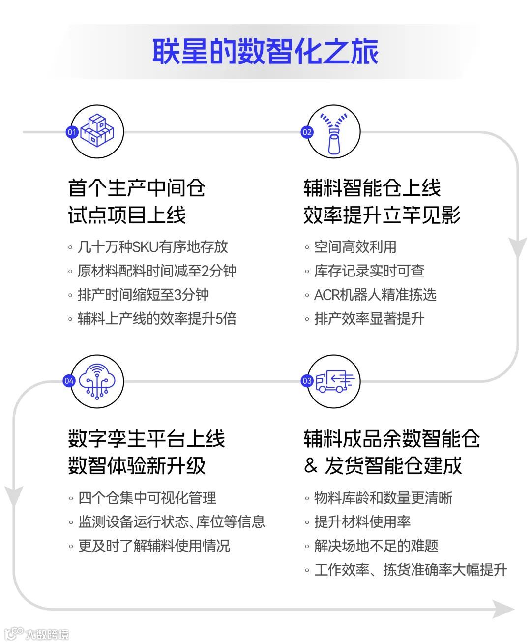 数字孪生平台的应用,更让联星的数智化之旅再上新台阶。四个仓库的设备运行状态、电量情况、库位利用率等数据清晰直观地呈现,省去人力走动巡查的工作,帮助联星更及时把握库存消耗情况,根据配料和生产状况快速调整生产策略,减少材料浪费。