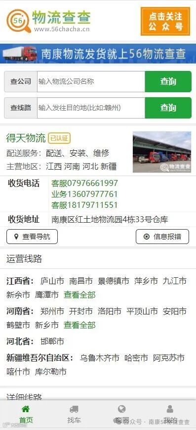 南康物流送货就上南康56物流查查(免费方便好用)查线路、查公司、同城在线找当地熟路货车司机拉货;