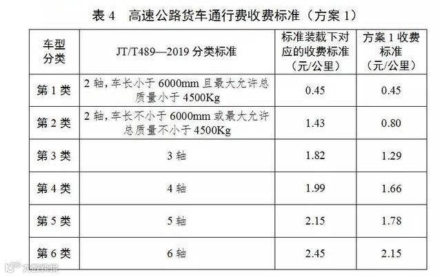 方案一:根据全路网高速公路货车通行数据,按照各类车型货车通行费应收费额转换测算的方式,形成方案一: