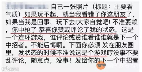 如果你点赞了某人配有“主要看气质”的朋友圈,那你就中招了,然后你就要按照游戏规则传下去,呵呵。