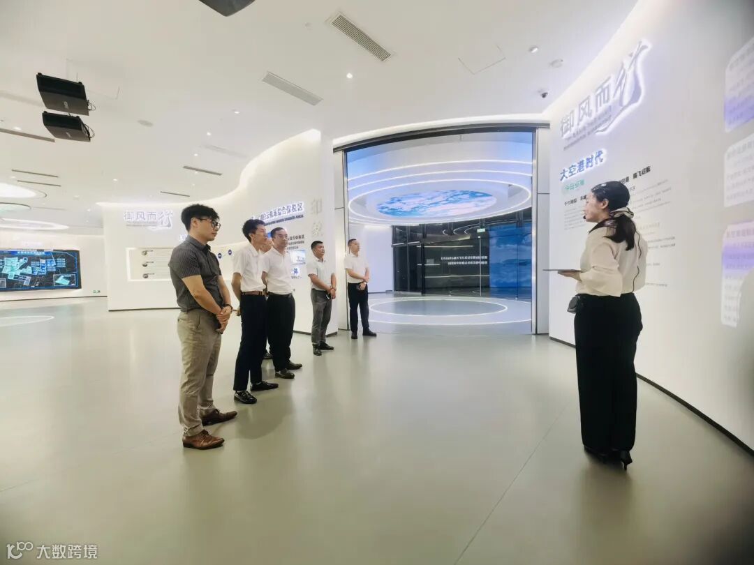 广浔团队一行从 “凌空而起” 主题展区,到 “御风而行” 发展历程展示墙,再到呈现 “区港一体化” 运作模式的规划沙盘,全方位了解了该区在保税监管、跨境电商全模式操作、低温保税仓储等方面的创新实践。