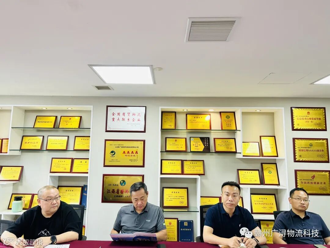 继7月25日广浔物流公司高管一行前往江苏省徐州市沛县实地考察智慧物流后,7月28日江苏沛县党工委书记杨琦、江苏沛县党政办副主任梁凯、江苏沛县发展集团副总经理刘克明、江苏沛县招商局三分局局长沈书培等领导一行莅临我司考察指导;赣州广浔物流科技有限公司陈小艳、黄邦清等公司高管全程陪同。