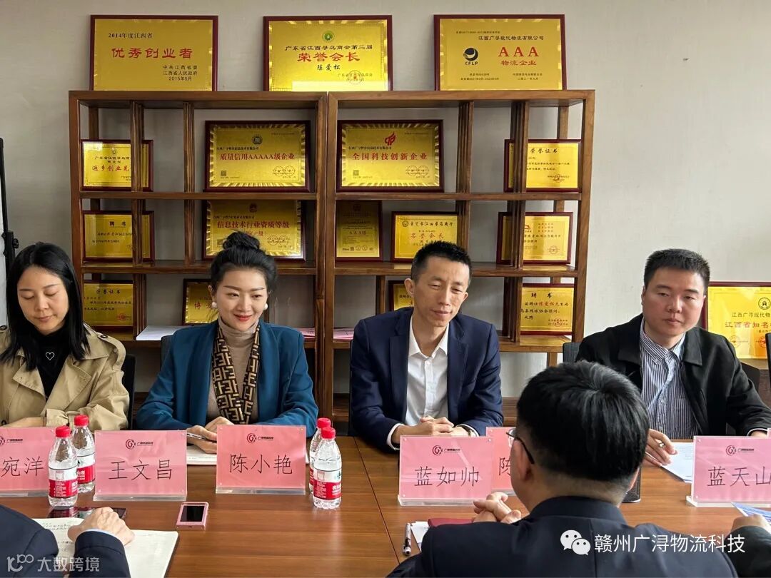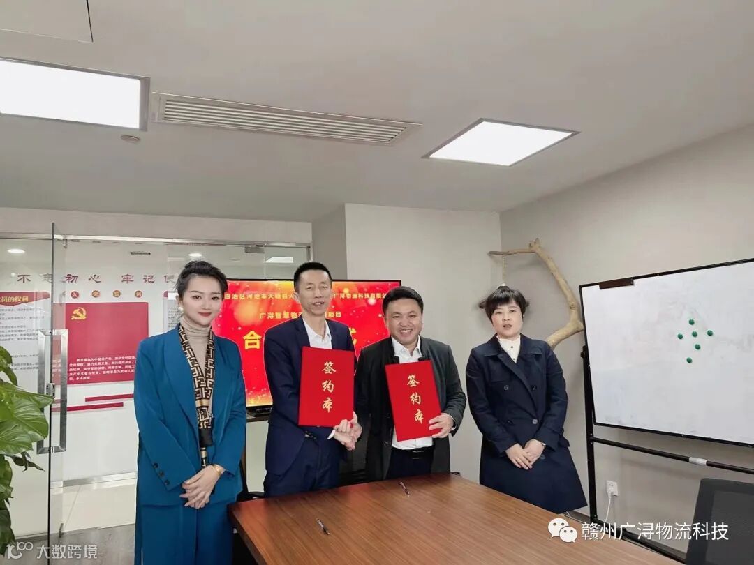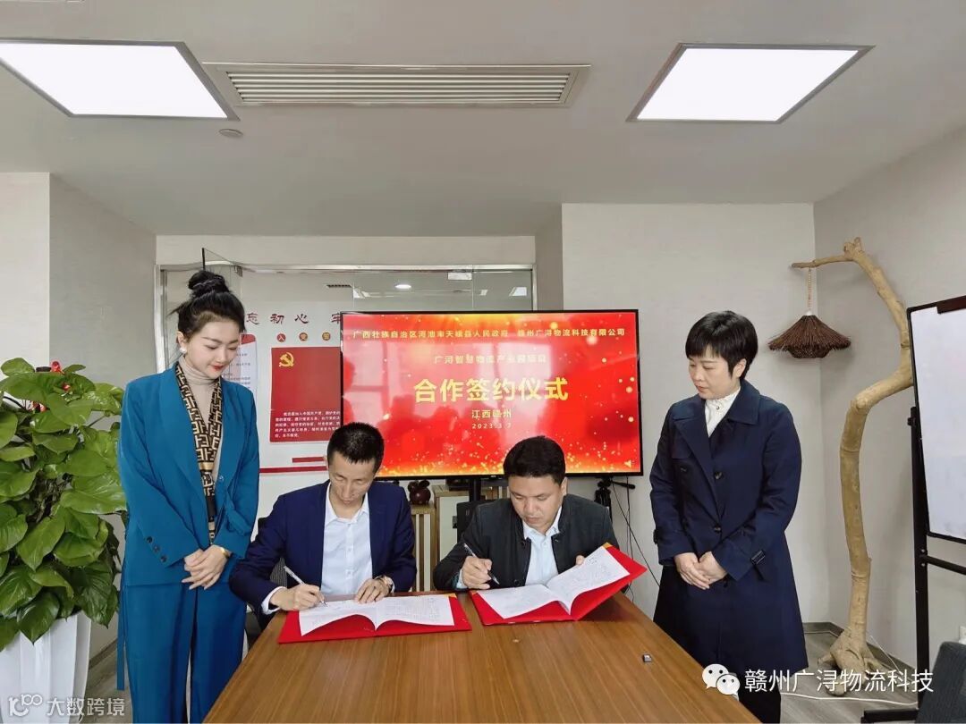 2023年3月7日,智慧物流产业园项目合作签约仪式在赣州广浔物流科技有限公司举行,广西壮族自治区河池市天峨县县委书记蓝如帅,县委常委、县委办主任王文昌、人民政府副县长蓝天山、工业信息化和商务局局长张永红、投资促进局局长韦琰琼、副局长吴源超、融媒体中心记者黄汉城及赣州广浔物流科技有限公司董事长陈爱松出席并见证了签约仪式。