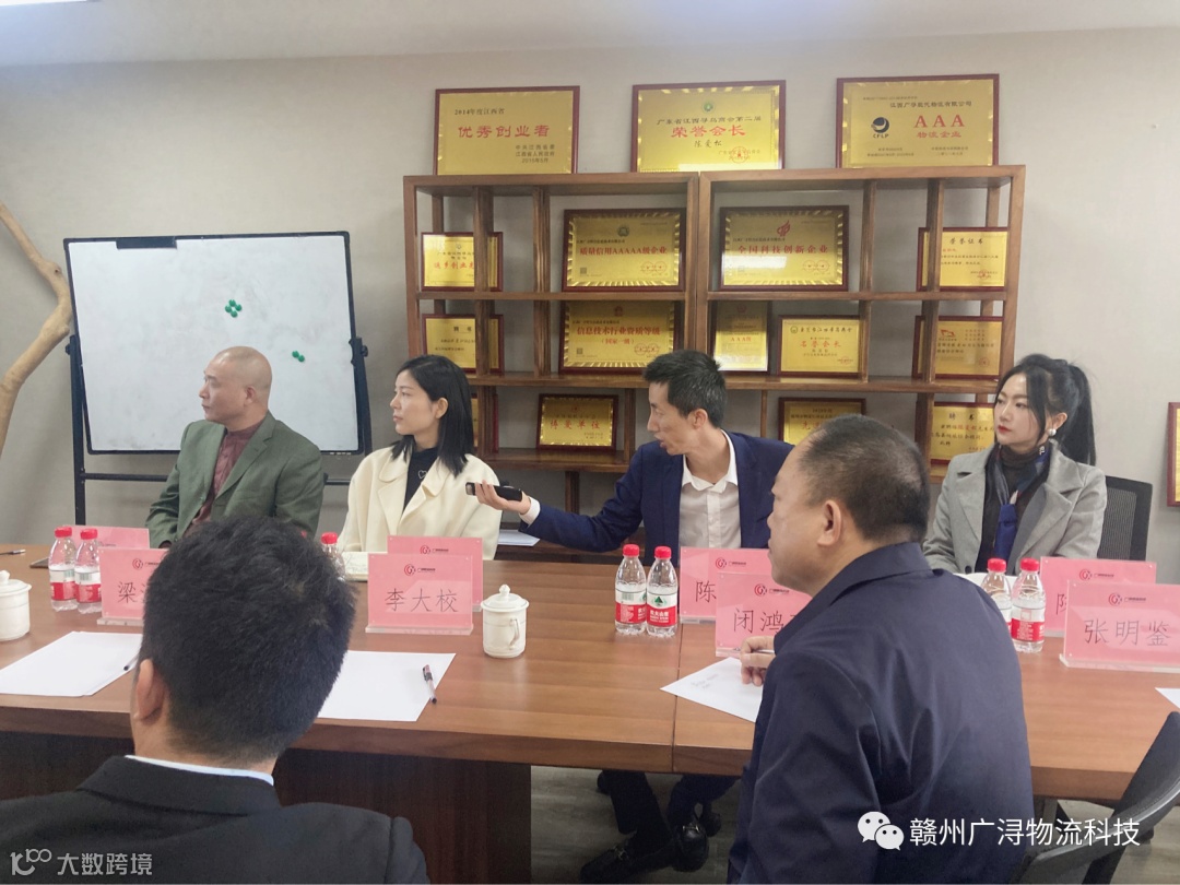 陈爱松董事长代表公司对靖西市委常委、副市长、统战部部长闭鸿飞等领导一行来到广浔指导工作表示热烈的欢迎,并介绍了公司运营模式及发展规划:公司依托技术、产品、模式的创新,通过线下智慧供应链产业园与线上交易大数据平台的复合型经营模式,通过引入现代智能化服务理念,整合各方资源,完成“四级分拨”体系搭建,有效实现了多级平台资源的互联互通,数据共享,降低流通成本、提高经济效益,更大程度上实现物流合理化,从而达到现代化运作流程;计划三年内实现国内物流枢纽城市覆盖,并基于线上平台信息化功能赋能等方面进行了详细的阐述。