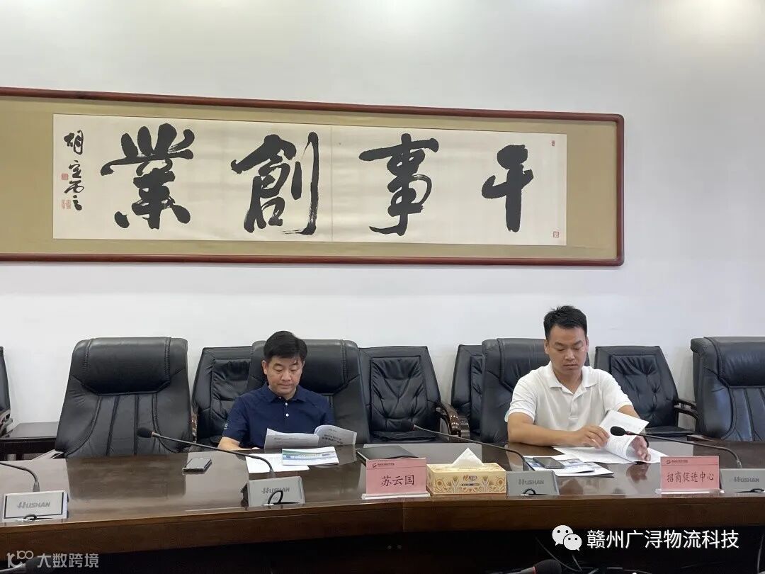 2022年8月6日,赣州广浔物流科技有限公司副总经理宋宛洋及公司高管一行来到湖北省荆州市经开区交流学习;荆州市经开区党工委书记苏云国、招商促进中心党组书记覃涛及相关职能人员与广浔物流团队进行了座谈会议。