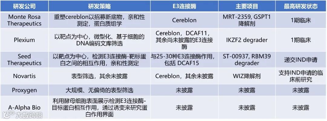 ▲专注于分子胶疗法研发的部分公司名单(图片来源:药明康德内容团队根据参考资料[1]制表)