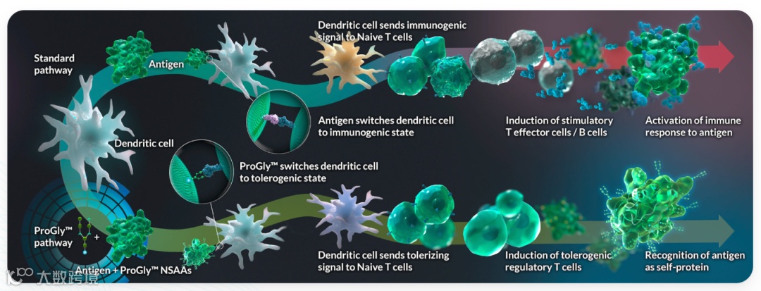 ProGly NSAA含有称为聚糖(glycans)的糖分子,可精确控制对蛋白质的免疫反应。ProGly NSAA中的聚糖可训练免疫系统,使得其可将所输注的疗法识别为“自身”蛋白质而非外来蛋白质,从而预防抗药免疫反应的发生。该技术具潜力扩展到尿酸酶以外的各种免疫原性疗法。该公司也正在开发其他ProGly疗法,通过让免疫系统对致病抗原产生选择性耐受,避免广泛抑制免疫系统,便可治疗和预防自身免疫性疾病的目标。