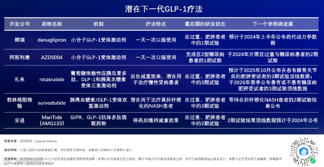 ▲5款潜在重磅下一代GLP-1疗法(图片来源:药明康德内容团队根据参考资料[1]重新整理制表)