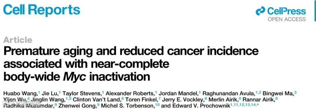 [1] Wang et al., 2023, Premature aging and reduced cancer incidence associated with near-complete body-wide Myc inactivation. Cell Reports Doi: https://doi.org/10.1016/j.celrep.2023.112830
