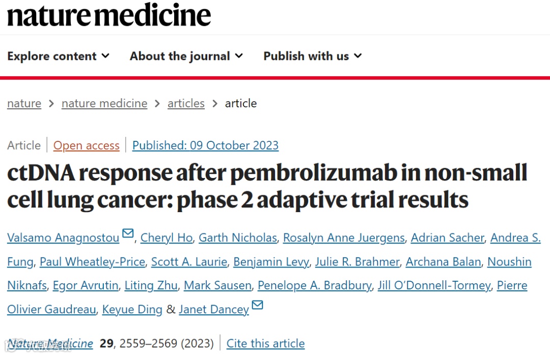 [1] Anagnostou, V., Ho, C., Nicholas, G. et al. ctDNA response after pembrolizumab in non-small cell lung cancer: phase 2 adaptive trial results. Nat Med (2023). https://doi.org/10.1038/s41591-023-02598-9