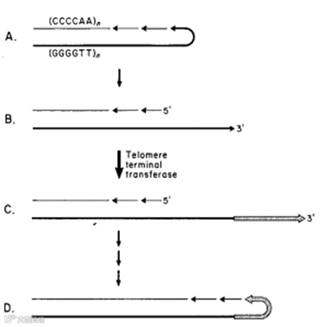 [6] Greider CW, Blackburn EH. Identification of a specific telomere terminal transferase activity in Tetrahymena extracts. Cell. 1985;43(2 Pt 1):405-413. doi:10.1016/0092-8674(85)90170-9
