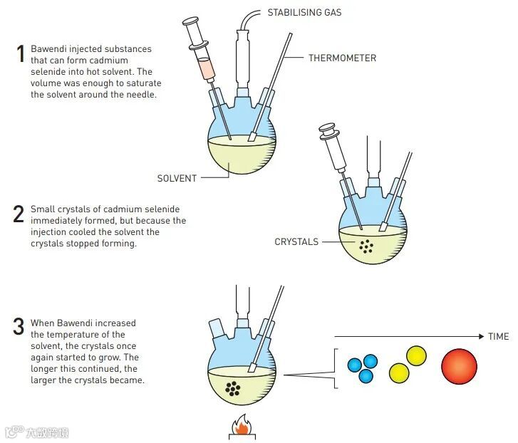 1993 年,Moungi Bawendi博士革新了量子点的化学生产方法,制作出了几乎完美的粒子,其高品质是对于实际应用必不可少的。