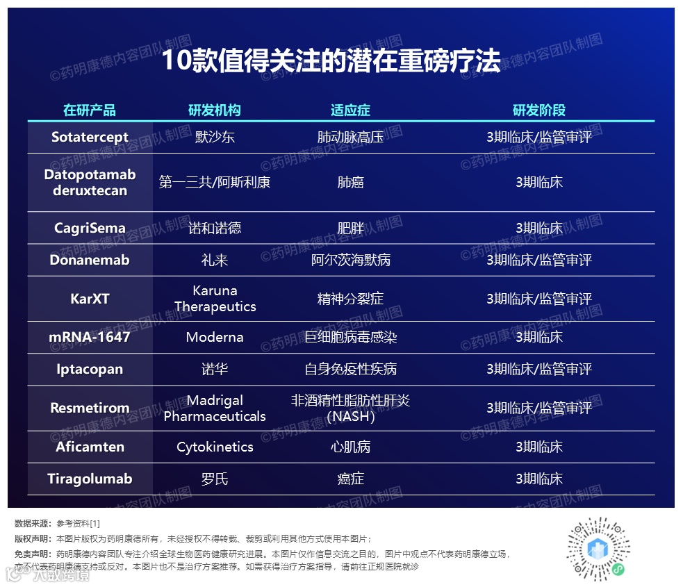 日前,行业媒体Evaluate发布的年度报告中,着重介绍了10款值得关注的在研新药。根据Evaluate的评估,这些在研项目均具有成为重磅疗法的潜力。值得一提的是,这10款潜在重磅疗法中只有两款抗癌疗法,它们治疗的疾病呈多元化趋势,其中,治疗心血管代谢疾病的在研新药有三款上榜,治疗神经系统疾病的两款在研新药上榜。下面我们来看一看这些潜在重磅疗法将有望造福哪些患者。
