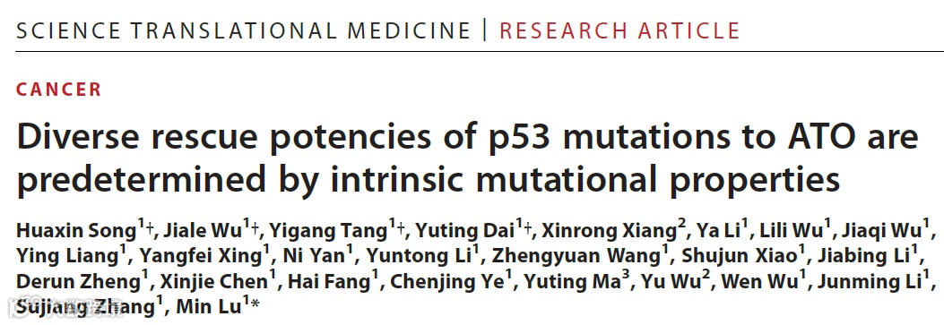 几十年来,针对p53的新药开发已经取得了一些成绩,多款促进p53热稳定性,恢复p53突变体三维结构和功能的在研疗法已经在临床前和临床期研究中展现出可喜的活性。其中,卢敏博士的团队在2020年发表的研究显示,三氧化二砷(ATO)能够让不能正常折叠的p53突变蛋白恢复折叠,产生具有抑癌功能的三维结构。