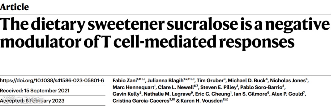 [2] Zani, F. et al. The dietary sweetener sucralose is a negative modulator of T-cell-mediated responses. Nature. DOI:10.1038/s41586-023-05801-6.