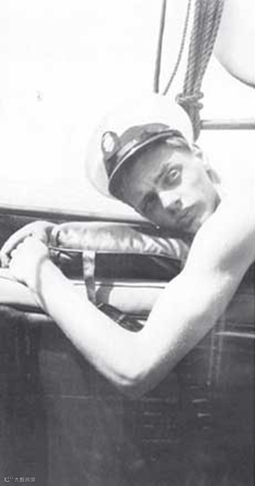 ▲二战期间年轻时的古迪纳夫教授在新英格兰海岸的航行中(图片来源:参考资料[1])