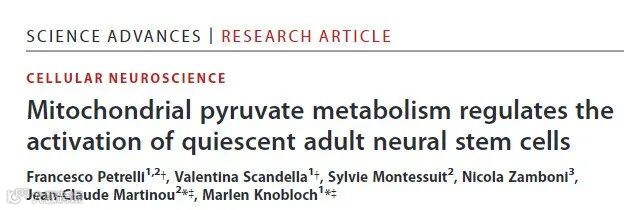 [1] Petrelli, Francesco et al. “Mitochondrial pyruvate metabolism regulates the activation of quiescent adult neural stem cells.” Science advances vol. 9,9 (2023): eadd5220. doi:10.1126/sciadv.add5220