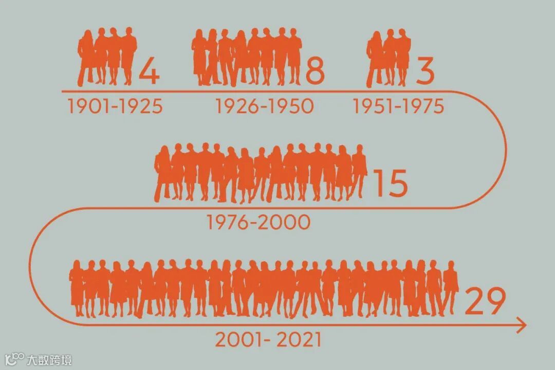▲历年来获得诺贝尔奖的女性数量(图片来源:诺贝尔奖官网)