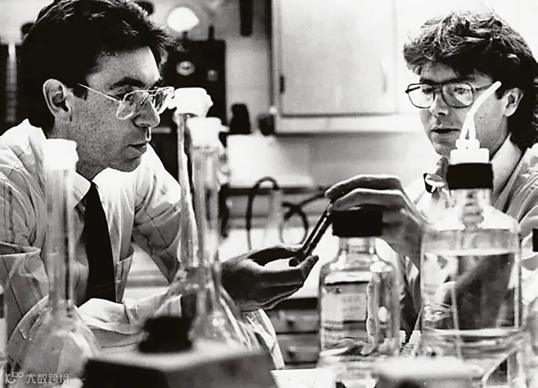 ▲上世纪80年代,罗伯特和博士后在实验室一边实验一边闲聊(图片来源,Credit:ROBERT J. LEFKOWITZ)