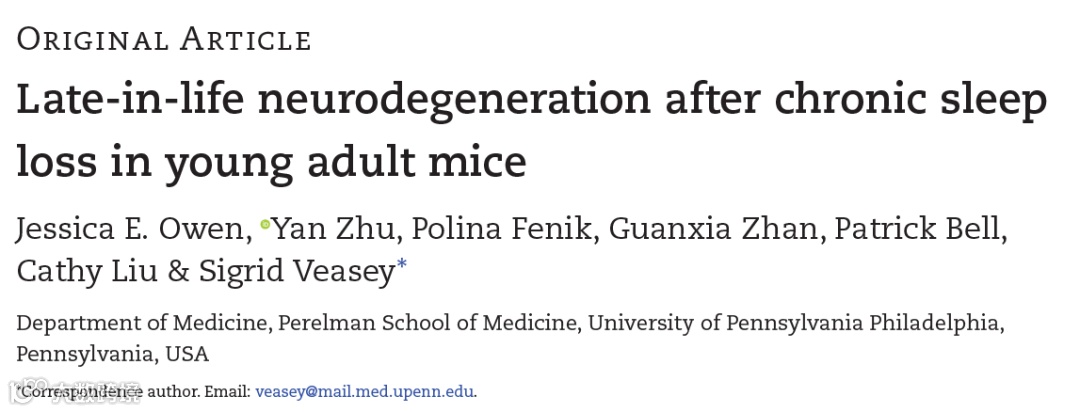 [4] Owen et al., (2021). Late-in-life neurodegeneration after chronic sleep loss in young adult mice. Sleep, doi: 10.1093/sleep/zsab057