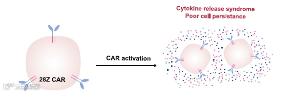 但经过人工改造的CAR分子和天然的TCR分子相比,具有明显的信号缺陷。由于缺少了很多调节和限制机制,CAR-T细胞往往过度“活跃”,易引发天然免疫系统大量分泌细胞因子,从而引起细胞因子风暴、神经毒性等不良反应,严重时会引发生命危险。另外,CAR-T细胞的寿命与疗法的持久性密切相关。CAR-T细胞在肿瘤环境中寿命较短,使得疗法作用效果难以持续,成为肿瘤复发的直接原因。