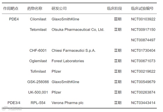 ▲正在COPD中进行临床开发的PDE4抑制剂(图片来源:参考资料[7])
