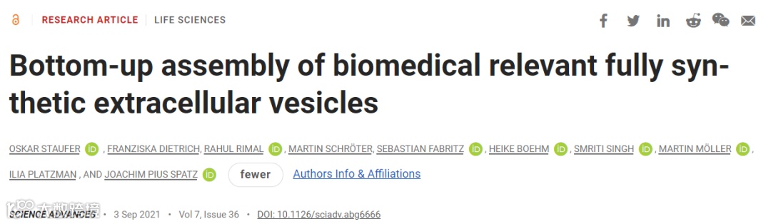 日前,在Science Advances上发表的一项研究中,海德堡马克斯·普朗克医学研究所(Max Planck Institute for Medical Research in Heidelberg)的研究人员领衔的一支德国研究团队,根据对天然外泌体的详细分析,依照这一“蓝图”从头完全人工合成了外泌体,并且在实验中证明了它在促进伤口愈合和血管增生方面的作用。新闻稿指出,这是研究人员首次构建具有治疗功能的全人工合成外泌体。