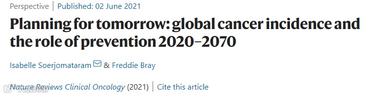 [1] Soerjomataram, I., Bray, F. Planning for tomorrow: global cancer incidence and the role of prevention 2020–2070. Nat Rev Clin Oncol (2021). https://doi.org/10.1038/s41571-021-00514-z
