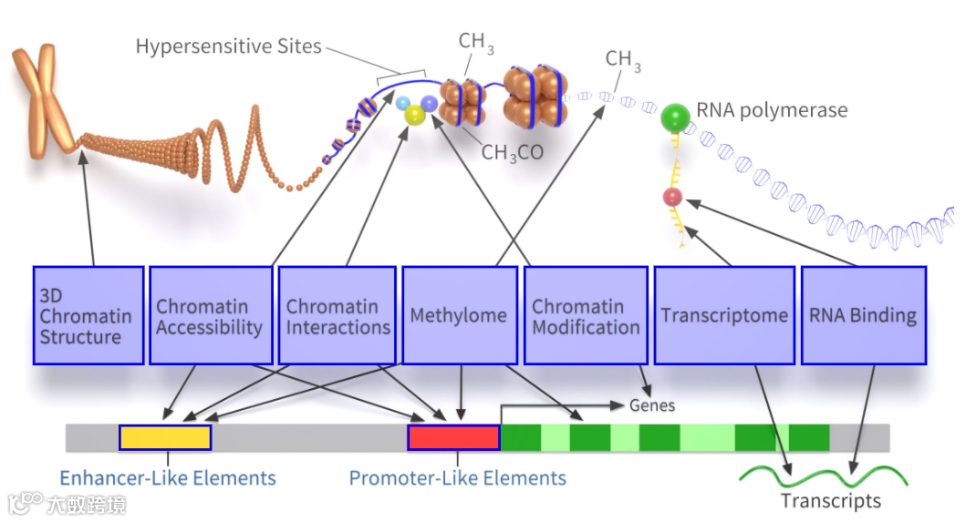 ▲调节基因表达的多种功能性元件(图片来源:ENCODE官网)