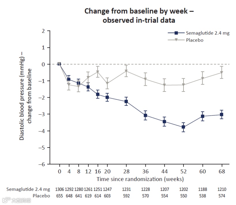 ▲索马鲁肽起到降低参与者血压的效果(图片来源:参考资料[1])