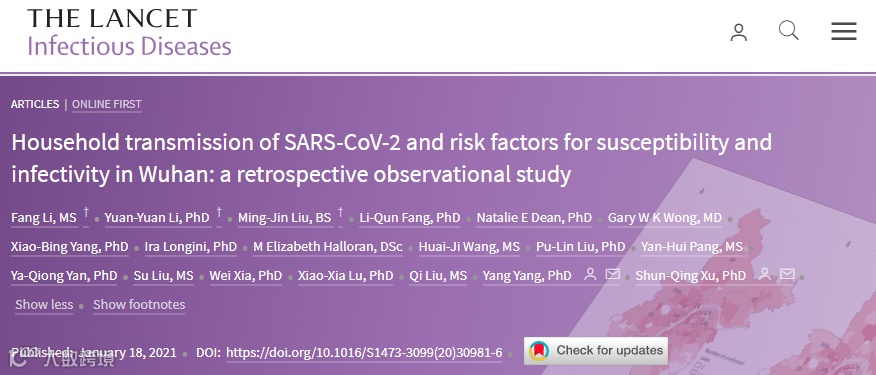 近日,《柳叶刀-传染病》发表一项大型研究,通过对武汉有确诊新冠病例或无症状感染者的超过2.7万户家庭进行回顾性分析,揭示了新冠病毒在家庭内的传播特点。华中科技大学同济医学院徐顺清教授和佛罗里达大学(University of Florida)杨洋教授为共同通讯作者。